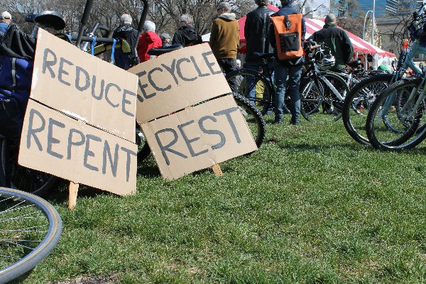 “We buy too much stuff; we use too much energy,” says fellow organizer Melanie Dennis Unrau. “We’re literally consuming the earth; spewing our excess into the atmosphere. It’s time for a holy pause, a different rhythm of life.”
